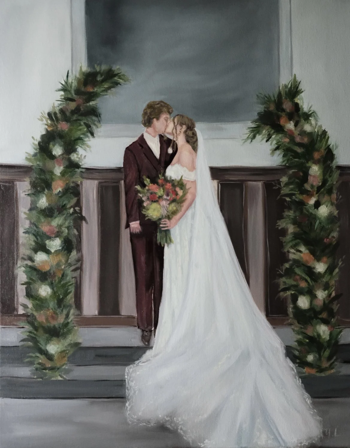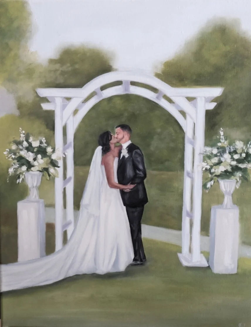 After the wedding, I carefully refine the details in my studio so that you’re left with a finished heirloom painting — a one-of-a-kind keepsake that beautifully tells the story of your day in brushstrokes and color.